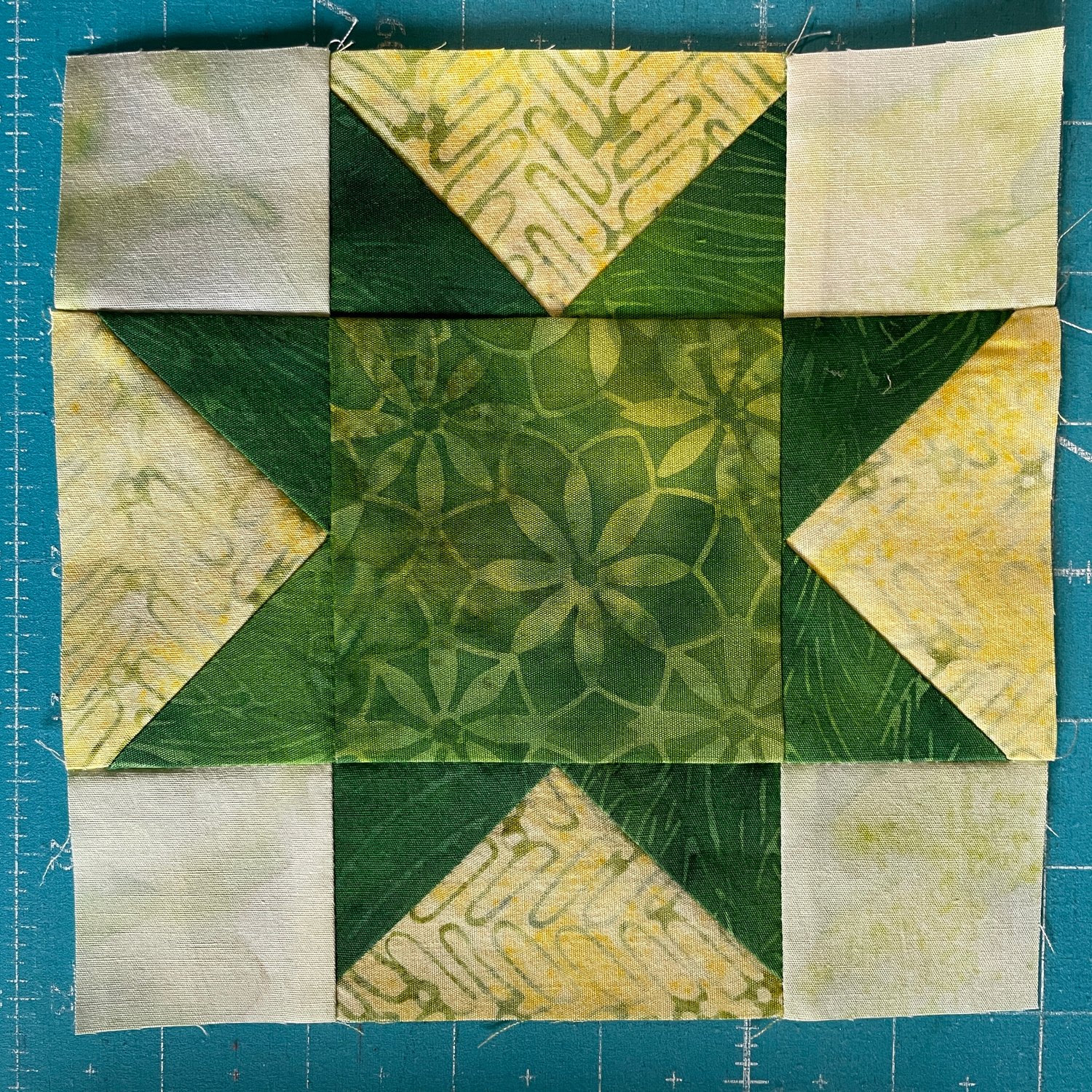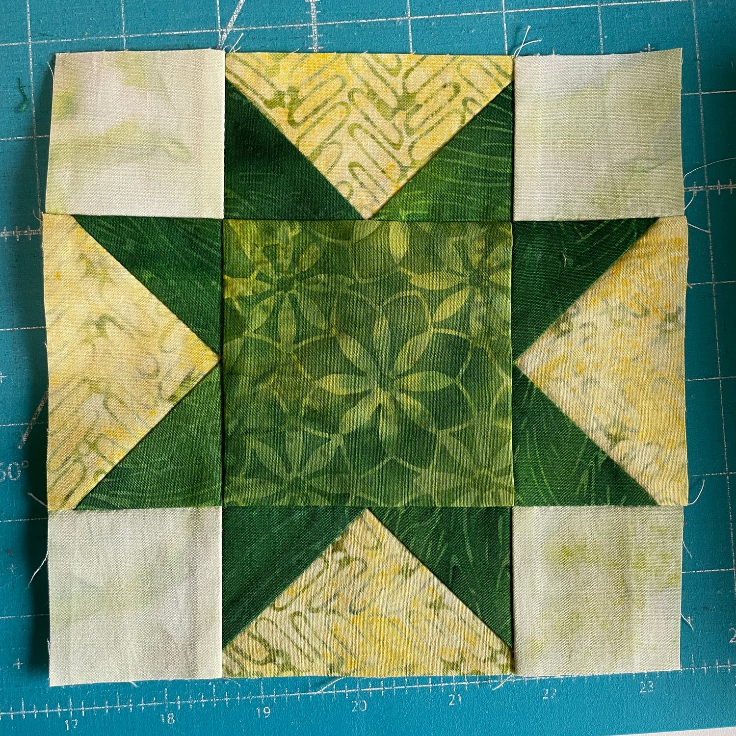 Row Three of the Hometown Nostalgia Quilt Along! You will need to make ten of these blocks for the quilt. For this row, you will need background fabric, light, medium and dark fabrics. If you are making all of your blocks the same you will need about 1/8 yard of your background, 1/4 yard of light, 1/8 yard of medium and 1/4 yard of dark fabrics. For a more scrappy look, choose your fabrics as you go - you can use one background or vary them for the look you want for your quilt. Finished block is 6 1/2 inches.